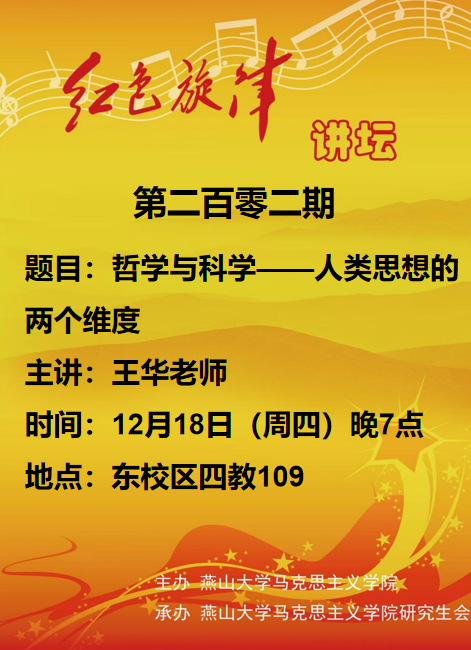 本次“红色旋律”讲坛时间为本周四晚7:00。在东校区主要教学楼设有“红色旋律”交流信箱和电子交流邮箱ysuhsxl@163.com,为同学们架起与主讲老师进一步交流的桥梁。
