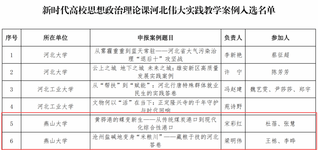 近日,在河北省教育厅组织开展的新时代高校思想政治理论课河北伟大实践教学案例征集评选活动中,我院两项教学案例成功入选,分别为宋彩红老师的教学案例《黄骅港的蝶变新生——从传统煤炭港口到现代化综合性港口》、梁明伟老师的教学案例《沧州盐碱地变身“米粮川”——藏粮于技的河北答卷》。