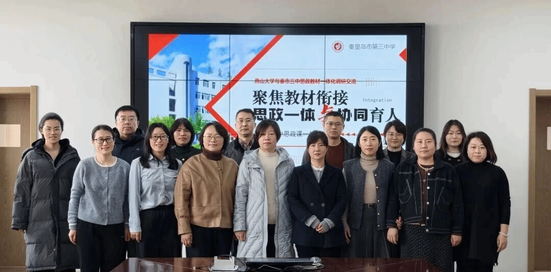为深入推进大中小学思政课一体化建设,强化跨学段教学衔接与协同育人工作,12月18日,燕山大学马克思主义学院副院长黄娟带领教研部主任及教师一行7人,赴秦皇岛市第三中学开展调研交流活动。秦皇岛市第三中学校长兼书记李金丑出席活动,党办主任王振宏及高中政治组全体教师共同参与了本次座谈。
