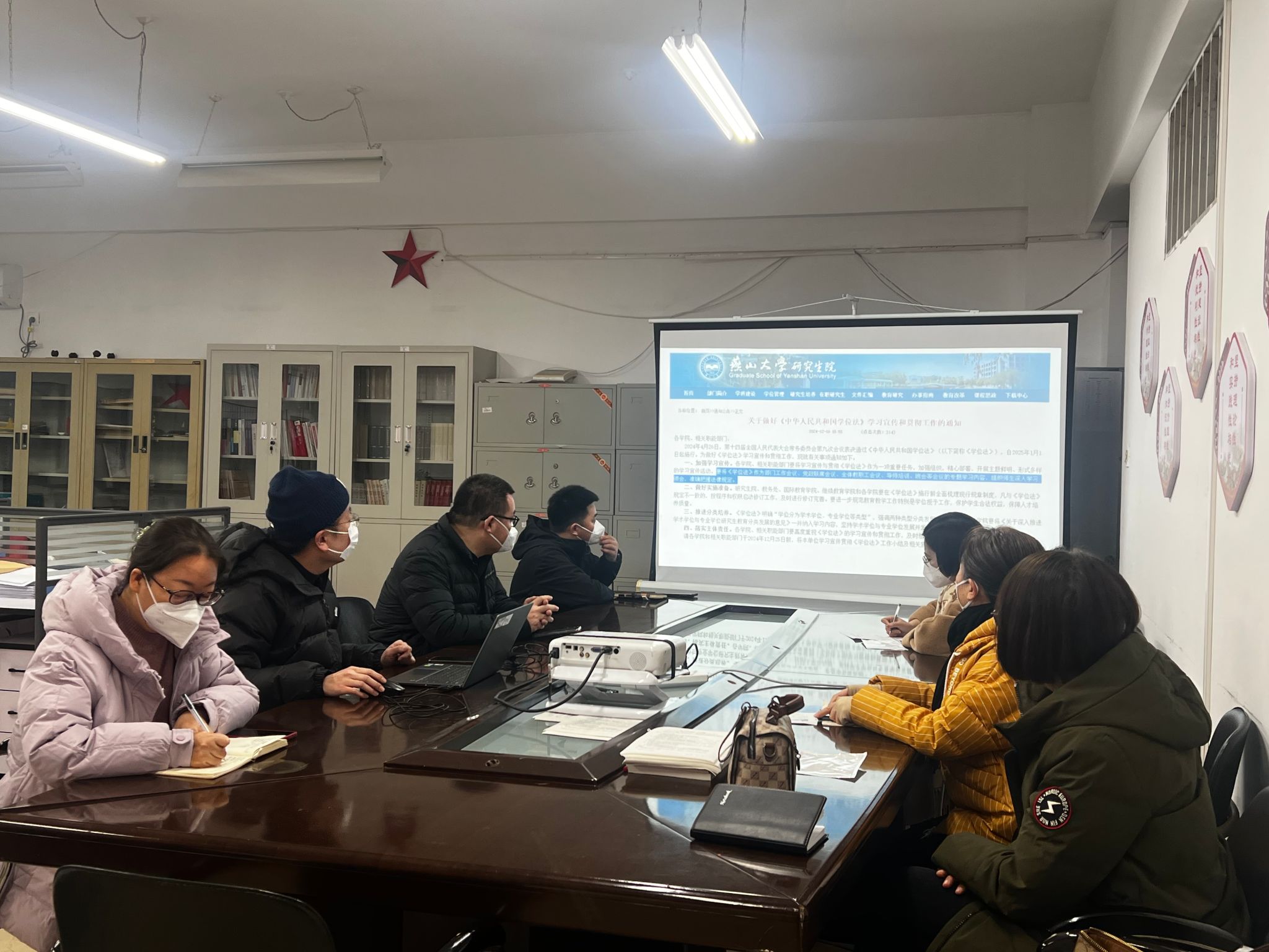 2024年12月19日,为做好《中华人民共和国学位法》学习宣传和贯彻工作,“毛泽东思想和中国特色社会主义理论体系概论”教研部开展《中华人民共和国学位法》专项学习,学习由教研部主任王栋主持,李婷婷做会议记录。