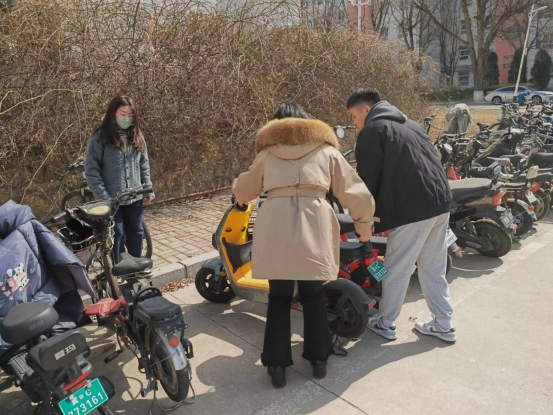 活动过程中,志愿者们分工明确、井然有序,积极地展开各项工作,将乱停乱放、违规占道的车辆摆放到白线以内的停车区域,并对停放区域内的车辆进行了统一规范整理,将停靠斜歪、方向相反的车辆扶正归位,并且将附近的共享单车也排放整齐。同时向停车、取车的同学积极宣传“文明出行、有序停车”的理念,引导骑行者将电动车和单车摆放到规定的停车区域内,共同维护了良好的停车秩序。与此同时,在志愿者们齐心协力地努力之下,停放区域也恢复了井然有序的模样。