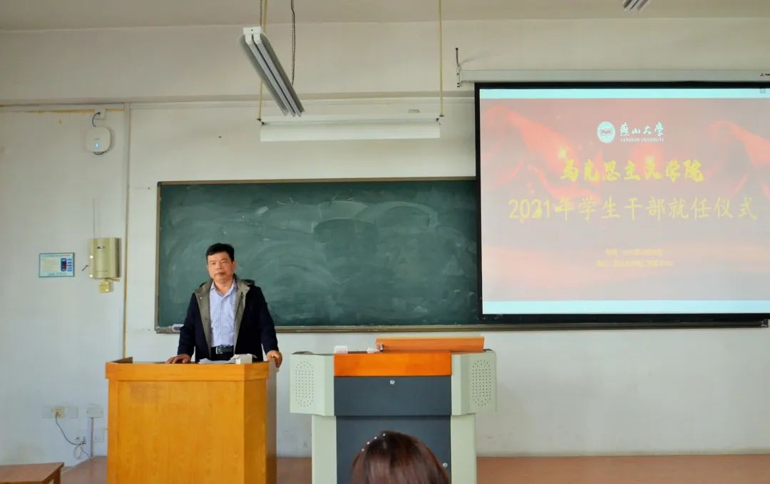为进一步发挥学生干部的桥梁和纽带作用,强化学生干部的责任意识和奉献精神,燕山大学马克思主义学院于2021年10月20日上午开展2021年学生干部就任仪式,党委副书记刘遵峰出席,各年级班主任、研一研二全体成员参与本次会议,会议由辅导员张海茹主持。