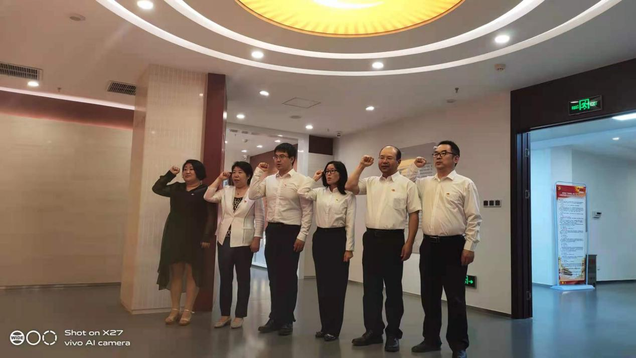 按照相关部署,2021年7月1日下午2:30,研究生思想政治理论课教研部党支部于学校组织馆举行“重温入党誓词”主题党日活动。活动由陈步伟主持,刘舸、王新华、齐凯君、车桂林、郭亚军同志参加活动。