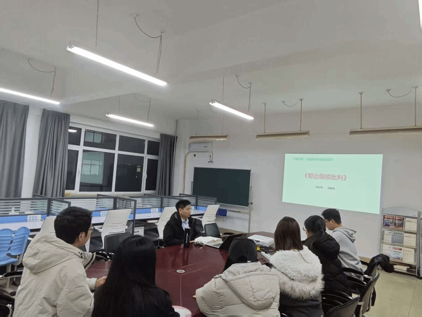 10月23日,“五峰书堂”经典共读会原理板块第十一期读书活动在四教411举行。此次阅读书目为马克思的经典篇目《哥达纲领批判》。在吴建良老师的导读下,同学们围绕这部纲领性文献展开了热烈讨论。