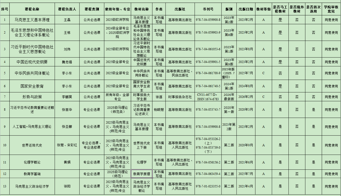 根据教务处相关工作安排,我院组织专家组于2025年11月14日对2026年春季学期选用的所有教材进行审查,专家组通过讨论一致同意对以下教材进行选用,清单如下表: