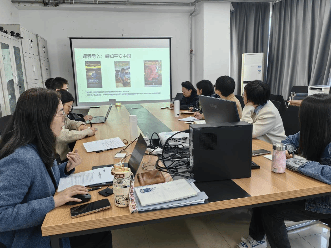 在活动期间,常玉洁老师围绕“聚焦建设更高水平平安中国”这一主题,开展了专题教学内容设计的分享活动。她从对平安中国的感知切入,借助国内外安全感数据调研来引入主题,并且围绕“平安中国为了谁”“平安中国谁成就”“平安中国我何为”这一问题链展开阐释。随后,参会教师围绕主题展开交流,分享了课程教学案例以及课堂互动设计。与会者认为,教学内容应当结合学生实际情况,并运用数据增强论证的说服力;课程思政融合点的挖掘需贴合学生实际,融入热点问题以增强课程的吸引力;应通过问题链式教学法优化教学设计,提升教学的启发性与引领效果。